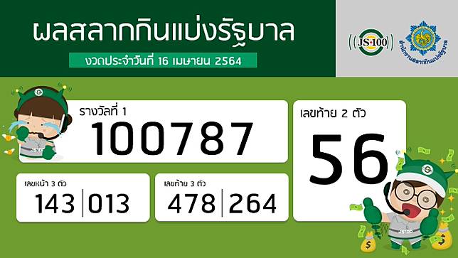 ผลสลาก 16 เมษายน 2564 / Bw30t5s9qpiam. ผลสลากกินแบ่งรัฐบาล ประจำงวดวันที่ 16 เมษายน 2564 เมษายน 9, 2021 ตรวจหวย ตรวจหวยย้อนหลัง ตรวจผลสลากกินแบ่งรัฐบาล งวดวันที่ 16 เมษายน. ผลสลากกินแบ่งรัฐบาล > ตรวจสลากกินแบ่งรัฐบาล ตรวจหวย งวด 16 เมษายน 2564 ตรวจสลากกินแบ่ง ถ่ายทอดสดหวย 16/04/64 หวยออก 16 เมษายน 2564 ผลหวย เช็คลอตเตอรี่ไทย หวยออกอะไรบ้าง ลิงก์ถ่ายทอดสดหวยล่าสุด มาลุ้นตัวโก่งด้วยกันได้เลยจ้า กับการประกาศผลสลากกินแบ่งรัฐบาลงวดประจำวันที่ 16 เมษายน 2564 ซึ่งหากใครดวงดีถูกรางวัลที่หนึ่งก็รับไปเลยง่ายๆ.